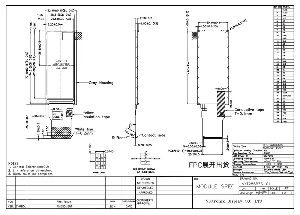 ในยุคของหน่วยสืบราชการลับโมดูล TFT ช่วยให้เราสามารถนำเสนอข้อมูลที่ต้องการด้วยสายตา คุณภาพของโมดูล TFT มีผลกระทบอย่างมากต่อการใช้งาน ข้อดีของ Victronix 2.86 นิ้ว 376 × 960 IPS TFT โมดูล? ในตอนแรกความสว่าง 300 cd/m², อัตราส่วนความคมชัด 1,500: 1, มุมมอง 85 องศาในทุกทิศทางและความสม่ำเสมอ 80% ทำให้มั่นใจได้ว่าภาพที่สดใส ประการที่สองรองรับอินเทอร์เฟซ RGB SPI+16 บิตที่มี ST7701s และแบ็คไลท์ LED สีขาว 5 ตายพร้อมอายุการใช้งาน 30,000 ถึง 50,000 ชั่วโมงทำให้มั่นใจได้ว่าการใช้งานระยะยาวในการใช้งานอุตสาหกรรมต่างๆ นอกจากนี้ยังเป็นไปตามมาตรฐาน ROHS และประสบความสำเร็จในการทดสอบความน่าเชื่อถืออย่างเข้มงวดรวมถึงการกระแทกด้วยความร้อนความชื้นและการป้องกัน ESD สูงถึง 8kV อากาศและหน้าสัมผัส 4KV ผลิตภัณฑ์นี้ทำงานได้อย่างมีประสิทธิภาพในอุณหภูมิสูงตั้งแต่ -20 ° C ถึง +70 ° C และสามารถทนต่อสภาวะการจัดเก็บที่รุนแรงตั้งแต่ -30 ° C ถึง +80 ° C